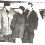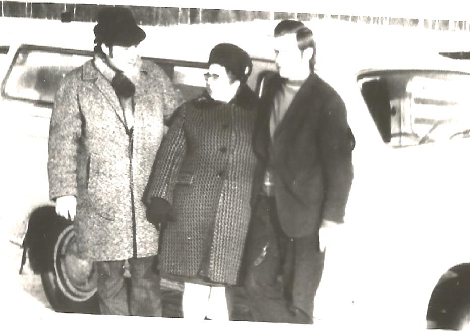 Rok 1967. Pracownicy powiatowej Stacji Sanitarno-Epidemiologicznej w Olecku w czasie tzw. opracowywania ogniska choroby zakaźnej w jednej ze wsi powiatu oleckiego. Chodziło wtedy o stwierdzone  zakażenia durem brzusznym. Od lewej: kontroler sanitarny po linii żywienia Wacław Sobolewski, pielęgniarka epidemiologiczna  Janina Sztomber, kierowca – dezenfektor – Zdzisław Tomczyk.