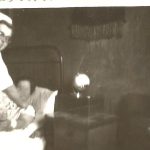 1955 r. – Dyżur nocny na oddziale wewnętrznym szpitala w Giżycku. Przy łóżku pacjentki uchwycona znienacka przez fotografującego pielęgniarka dyżurująca Janina Gorlo (później Sztomber).