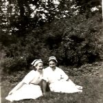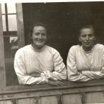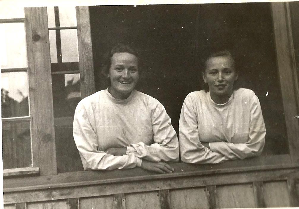 1 maja 1953 r. Pielęgniarki i młode pracownice szpitala w Olecku po pochodzie pierwszomajowym. Tym razem dziewczyny występują w strojach organizacyjnych ZMP. Strój stosowny do czasów. Elwira Mońko (za 5-miesięcy Tuchlińska) siedzi pierwsza z prawej.